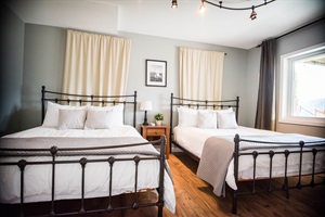 No need to fight, there are four generous bedrooms to choose from. Two on the main floor and two downstairs. There is also a fun sleeping loft upstairs with four twin-sized beds that the kids will love. The main floor features an extra-large master bedroom with a king-sized bed and an attached bathroom with a walk-in shower. A second bedroom with a queen-sized bed can also be found on the main floor. This bedroom opens up into a second bathroom with a combination shower/tub. Downstairs is another extra-large master bedroom with a king-sized bed and an attached bathroom with a recently remodeled huge walk-in shower. On the other end of the downstairs floorplan is yet another room with two queen beds.